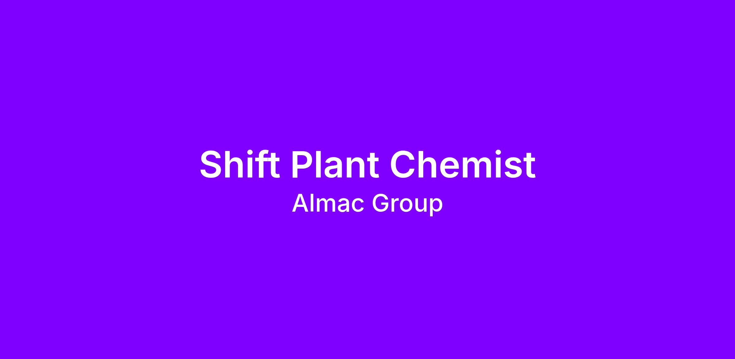 Shift Plant Chemist Opportunities