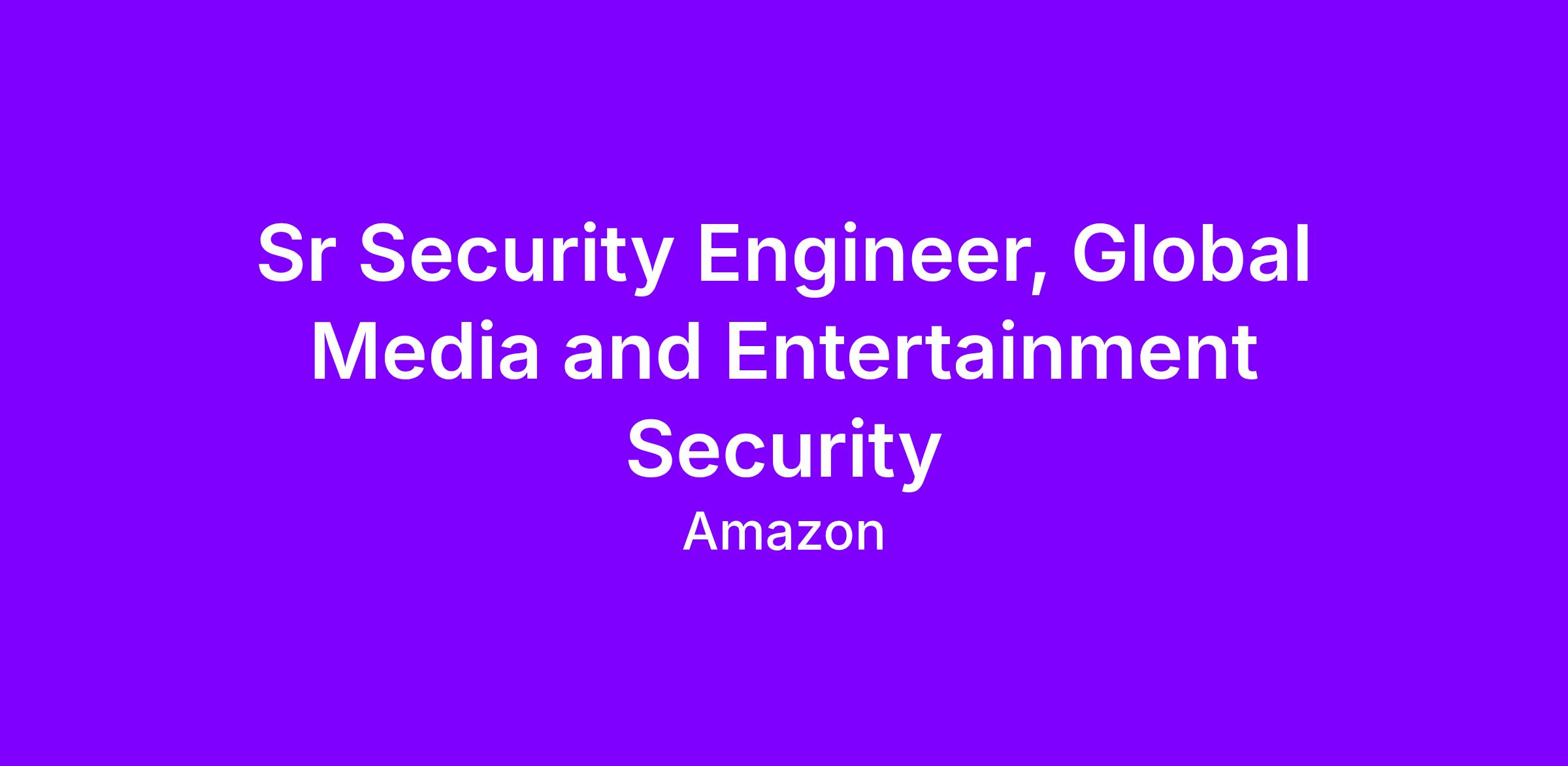 We are changing the way millions of customers interact with entertainment that enriches lives. Amazon Global Media and Entertainment delivers experiences at unparalleled scale. Whether it's launching our own studio to create original and exclusive content, or connecting players and developers to the games and communities they love, Amazon Global Media and Entertainment Security is at the center of customer, builder and content journeys. Our vision is to be the most loved and trusted entertainment service by empowering the business with innovative security solutions that complement our creative workforce without restricting our ability to deliver a seamless customer experience.