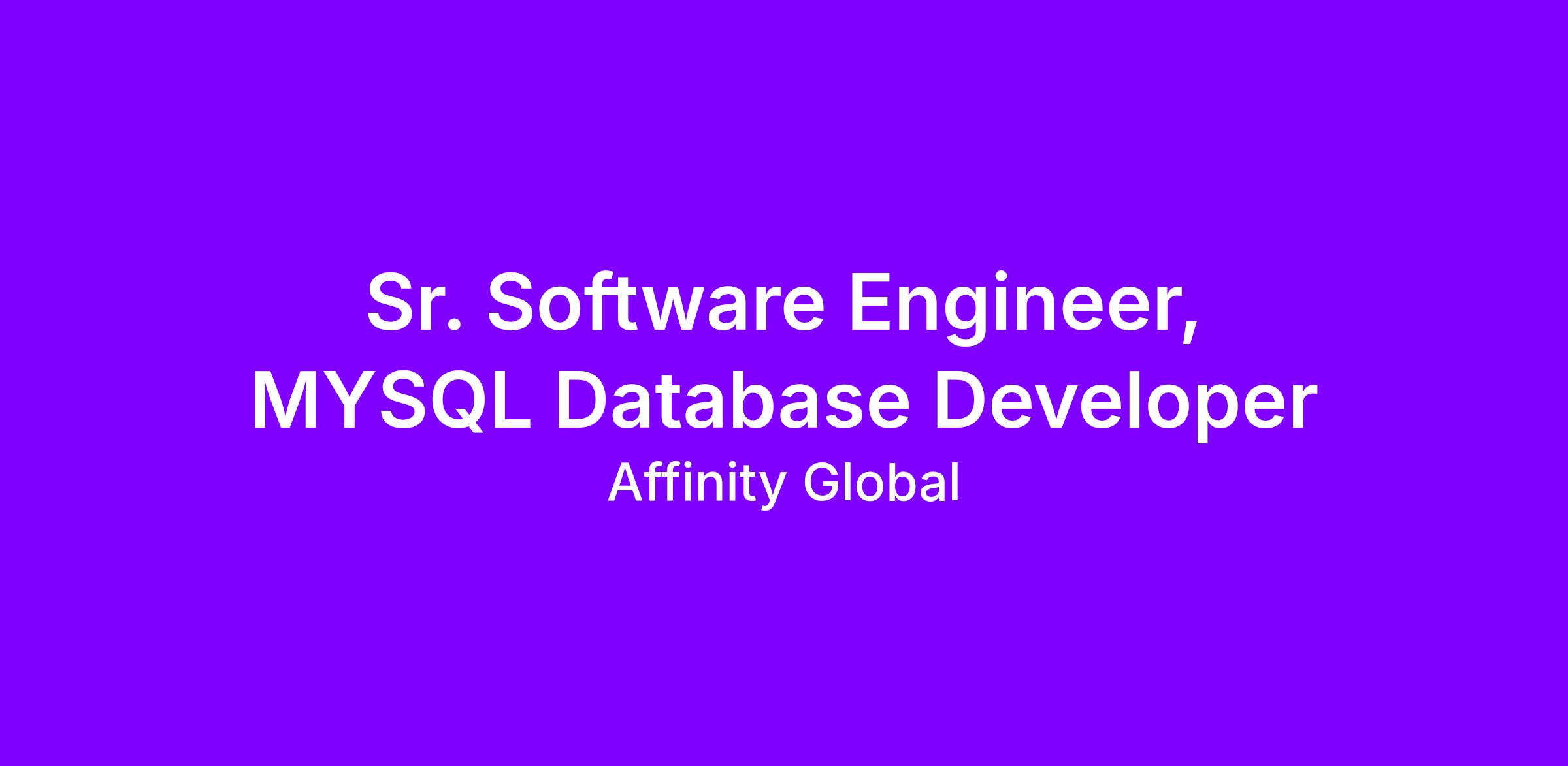 Sr. Software Engineer, MYSQL Database Developer