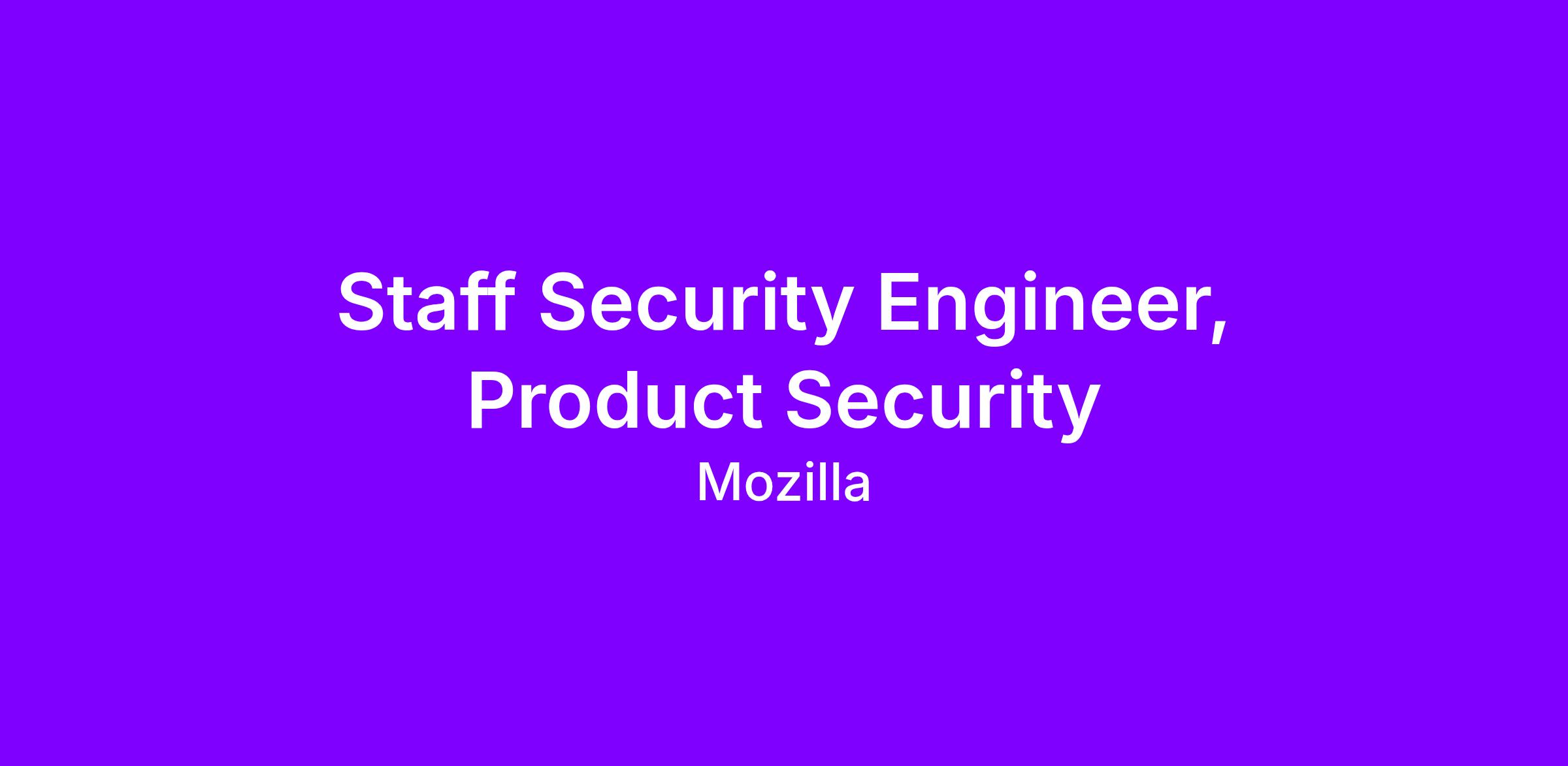 At Mozilla, we believe the internet is a global public resource—open and accessible to all. As a Staff Security Engineer, you'll protect that vision by building, breaking, and hardening products that put people’s privacy and safety first. We are looking for a security practitioner to reduce risk in applications, and ensure our products live up to Mozilla’s dedication to privacy and a joyful Internet. This position is remote-friendly and open to most locations in the US and Canada.