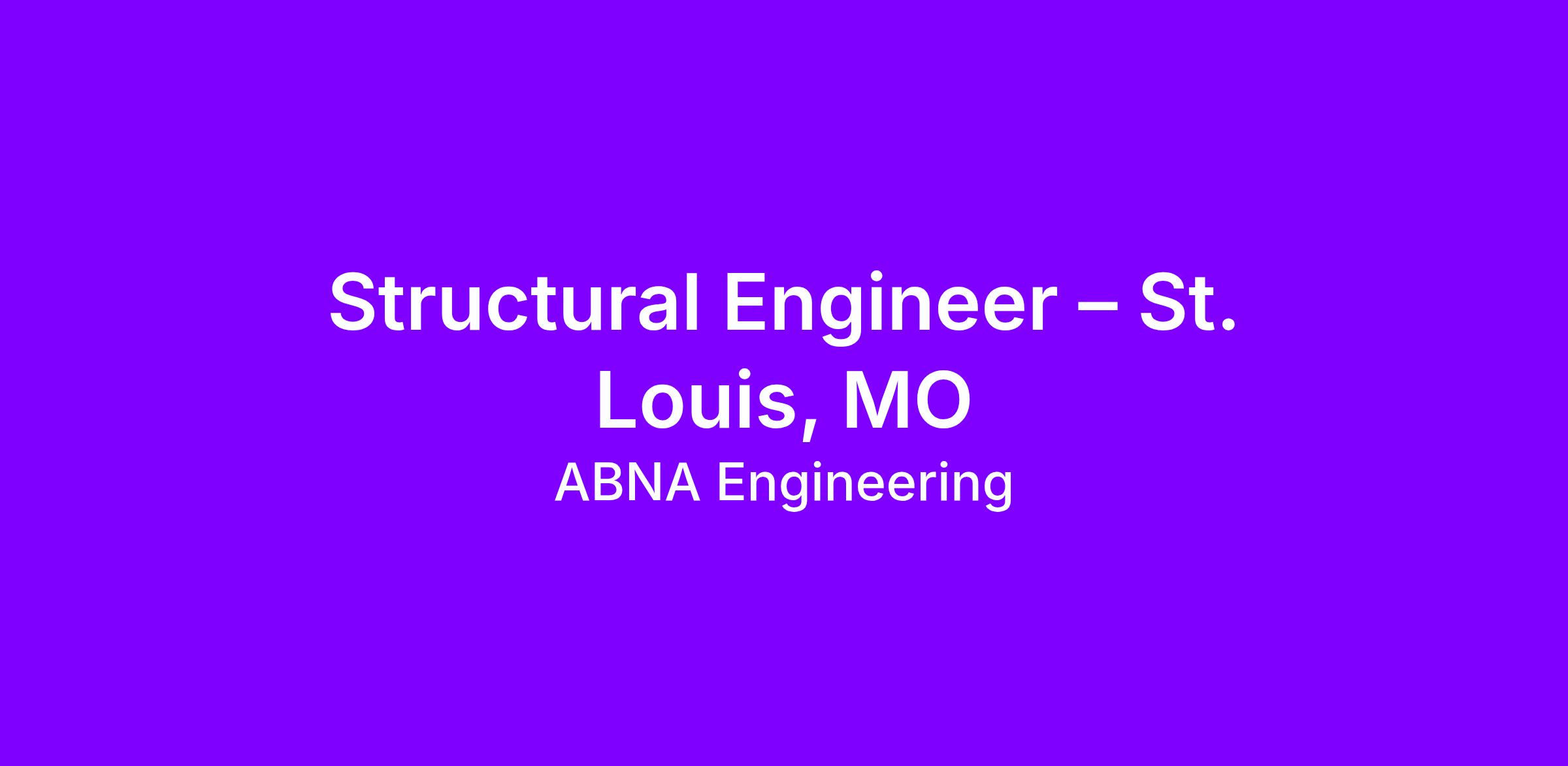 ABNA is seeking a Structural Engineer for our St. Louis, MO location. The ideal candidate should possess