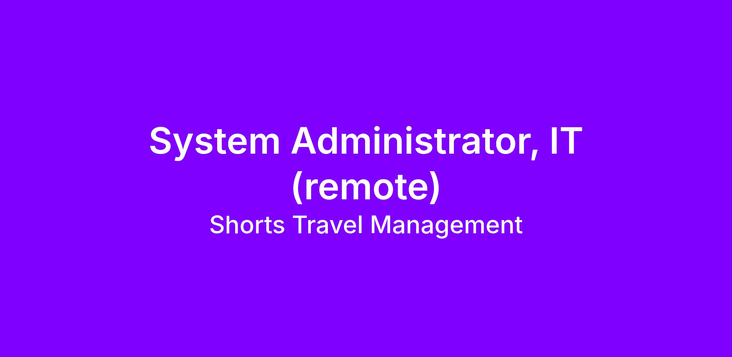 At Short's Travel Management, we are a dynamic organization dedicated to being a leading provider of NCAA Athletic travel. As a leader in our field, we are looking to strengthen our team by adding a System Administrator, IT. We have a great team culture where we genuinely enjoy who we work with. If you have system, technology operations, or database experience, this may be a great fit for you! This position may work remote.